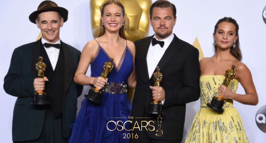 Tras una larga racha de estatuillas doradas para Mad Max, carrerilla que se paró al conseguir el sexto galardón, vinieron los premios a Mejor Actor y Actriz de Reparto, que fueron a parar a Mark Rylance por El Puente de los Espías -dejando a Stallone sin galardón- y a Alicia Vikander por La Chica Danesa -quitándole el premio a Kate Winslet-. Por lo que a Mejor Actriz Protagonista se refiere, Brie Larson se hizo con el Oscar por La Habitación, agradeciendo al pequeño Jacob Trembley -el cual, enfundado en su elegante traje se mostraba muy contento y emocionado- el haber podido compartir esta película con él.