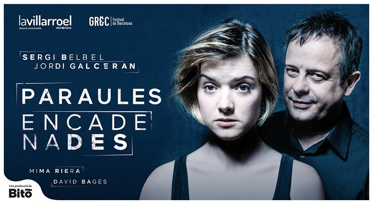 Hace dos décadas que el guionista catalán Jordi Galcerán escribió Paraules encadenades, un thriller representado en los teatros por Emma Vilarasau y Jordi Boixaderas bajo la batuta de Tamzin Townsend. Este año, Sergi Belbel dirige una nueva versión del clásico que a tanta gente atrapó en su momento. Se ha programado en La Villarroel de Barcelona dentro del Festival Grec 2017 hasta el 6 de agosto. David Bagés es aquí Ramón, el asesino en serie que mata sin sentir ningún tipo de emoción; y Mima Riera es Laura, su expareja y su próxima víctima. Encerrados en un teatro abandonado, ambos comienzan un juego que pone a prueba el poder de las palabras. Un juego peligroso y atractivo a partes iguales.