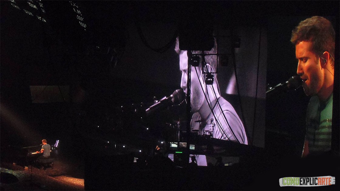 Ni pasarela ni plataformas extensibles. La escenografía es simple, pero es que no le hace falta mucha parafernalia para ofrecer un show que resulta por momentos vertiginoso y al mismo tiempo tranquilo y emocional. Un par de pantallas a los laterales y otra enorme pantalla de vídeo detrás con proyecciones y ampliaciones de sus pasos y gestos son suficientes para verle brillar. La magia del espectáculo está en su voz y en los músicos que le acompañan -aunque a decir verdad, se defiende bien a solas y podría prescindir de ellos si quisiera-.