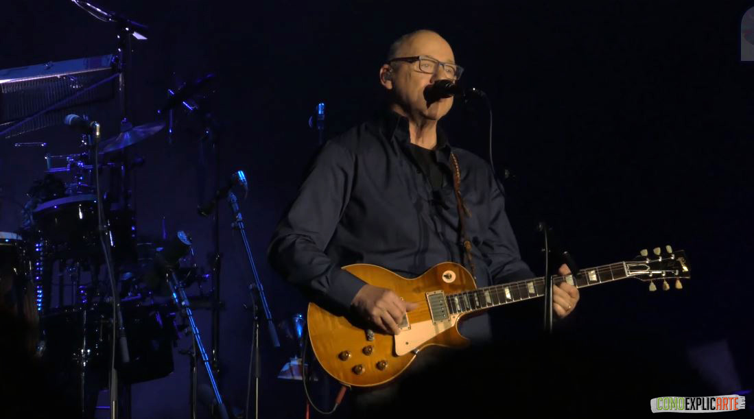 La puesta en escena es simplona. Básica. Por no haber no hay ni pantallas, solo algunos focos de colores. Y es que el artista escocés bastante tiene con su talento y el del gran séquito de músicos que le acomàñan desde hace dos décadas. Una banda que en la gira actual ha ampliado y cuenta con diez personas encargadas de envolver su guitarreo. Son Guy Fletcher (teclados), Richard Bennett (guitarra), Glenn Worf (bajo), Jim Cox (piano), Mike McGoldrick (flauta), John McCusker (violín y cistro), Ian Thomas (batería), Danny Cummings (percusión) y los nuevos Graeme Blebins (saxofón) y Tom Walsh (trompeta). Los instrumentos de viento están tan bien integrados con el sonido eléctrico que ayudan a aumentar el sentimiento de nostalgia al entonar viejas glorias, canciones recuperadas de su etapa en grupo y de sus comienzos como solista.