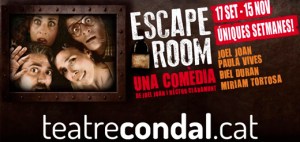 - ESCAPE ROOM: Del 17 de septiembre al 15 de noviembre en el Teatre Condal de Barcelona. ‘Escape Room’ es una comedia de Joel Joan y Héctor Claramunt en la que dos parejas ponen a prueba su amistad cuando participan en este popular juego. Con Joel Joan, Paula Vives, Míriam Tortosa y Biel Duran.