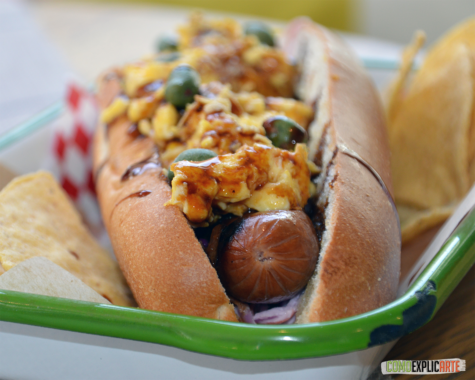 Los huevos benedict destacan en su carta y tienen la particularidad de que puedes añadir dos acompañamientos sin ningún costo adicional. No obstante, nosotros pedimos un croissant con jamón, aguacate y huevo. Justo después, nos decantamos por una opción más arriesgada y diferente: El teriyaki dog roll. O lo que es lo mismo, un Hot dog de ternera con huevo revuelto con queso, salsa teriyaki, coleslaw, crispis nachos y cacahuetes con wasabi. ¡Muy original!