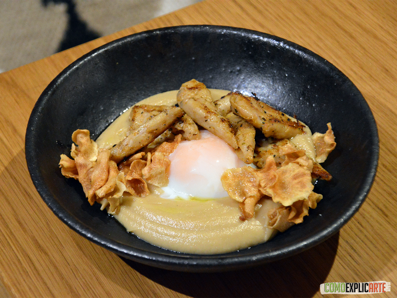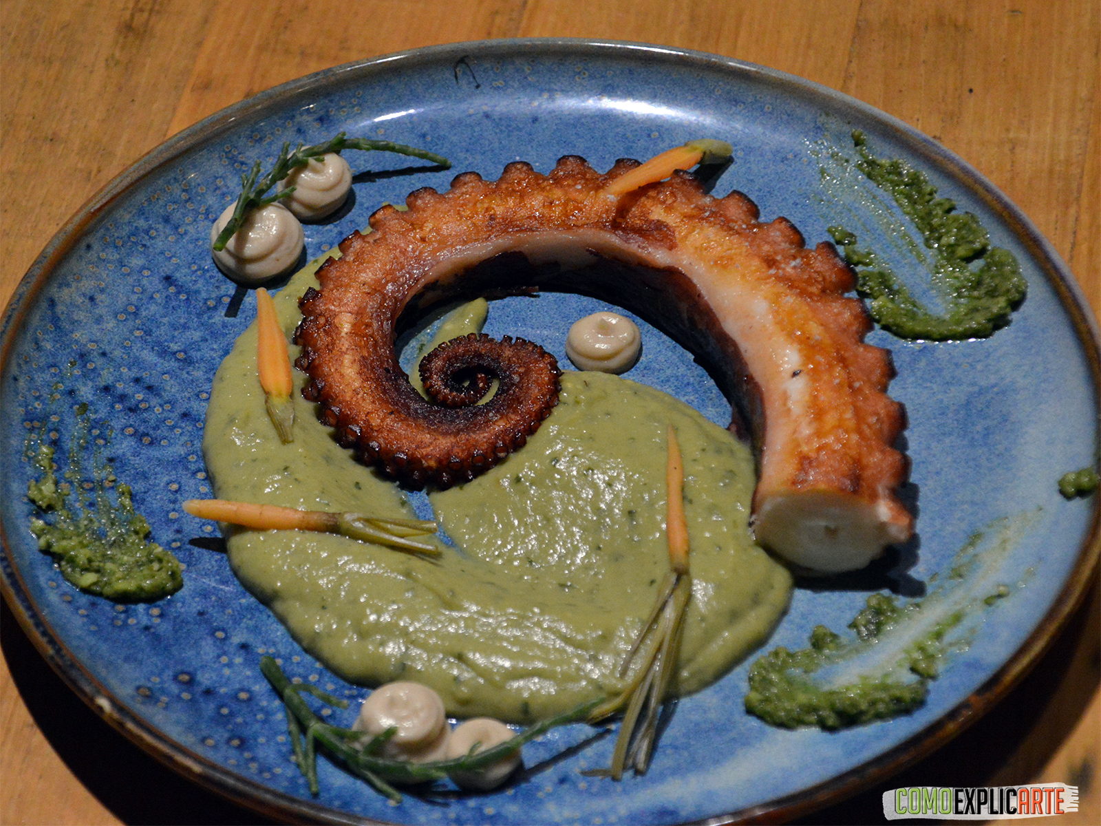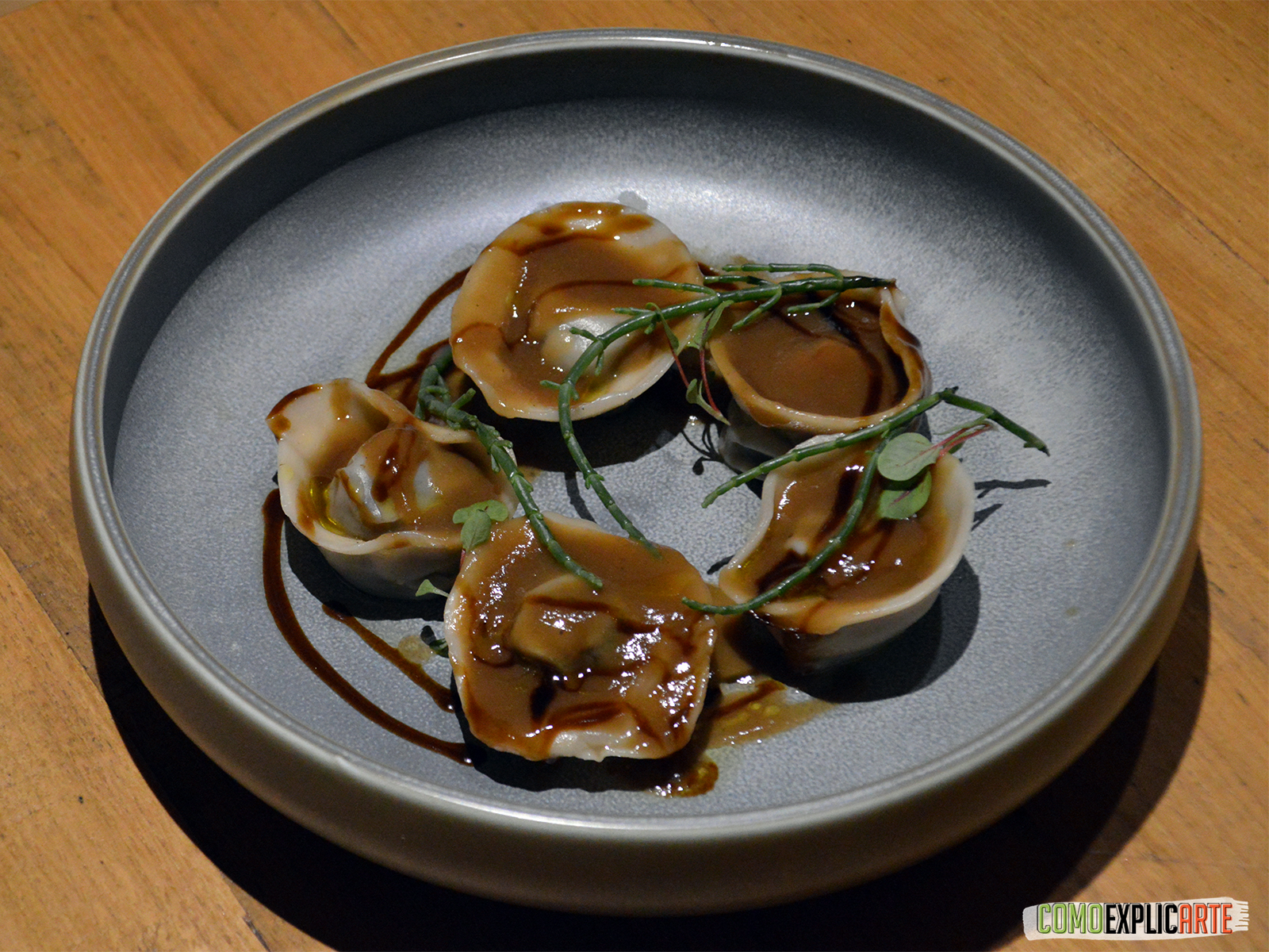 De entre los platos fuertes, nos quedamos con el Pulpo asado con parmentier de apionabo y pesto de salicornia (diferente a lo habitual y con toques cítricos) y los Raviolis con trompetas de la muerte y tofu con crema de cebolla (¡Qué barbaridad! Totalmente caseros y con una salsa que aporta un punto extra de sabor).
