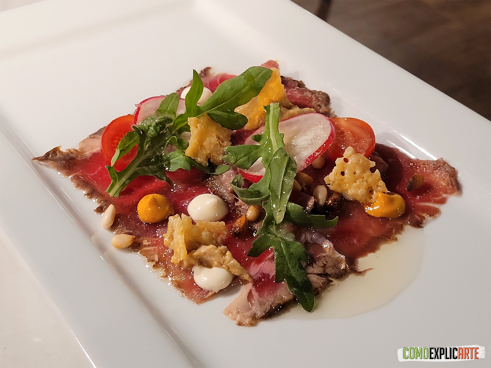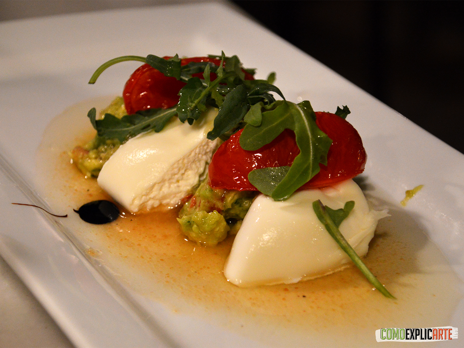 A parte de la carta, diseñan un menú degustación con productos de temporada formado por tres entrantes fijos, y un principal y un postre a escoger. En nuestro caso el chef lo preparó especialmente para la ocasión. Los tres entrantes que probamos fueron: Tostada de caballa marinada y ahumada con crema de Ulloa; Burratina con tomate semiseco, guacamole y vinagreta de almendras; y Carpaccio de ternera Angus con foie, chips de parmesano y vinagreta de manzana. A cada cual más delicioso en boca.