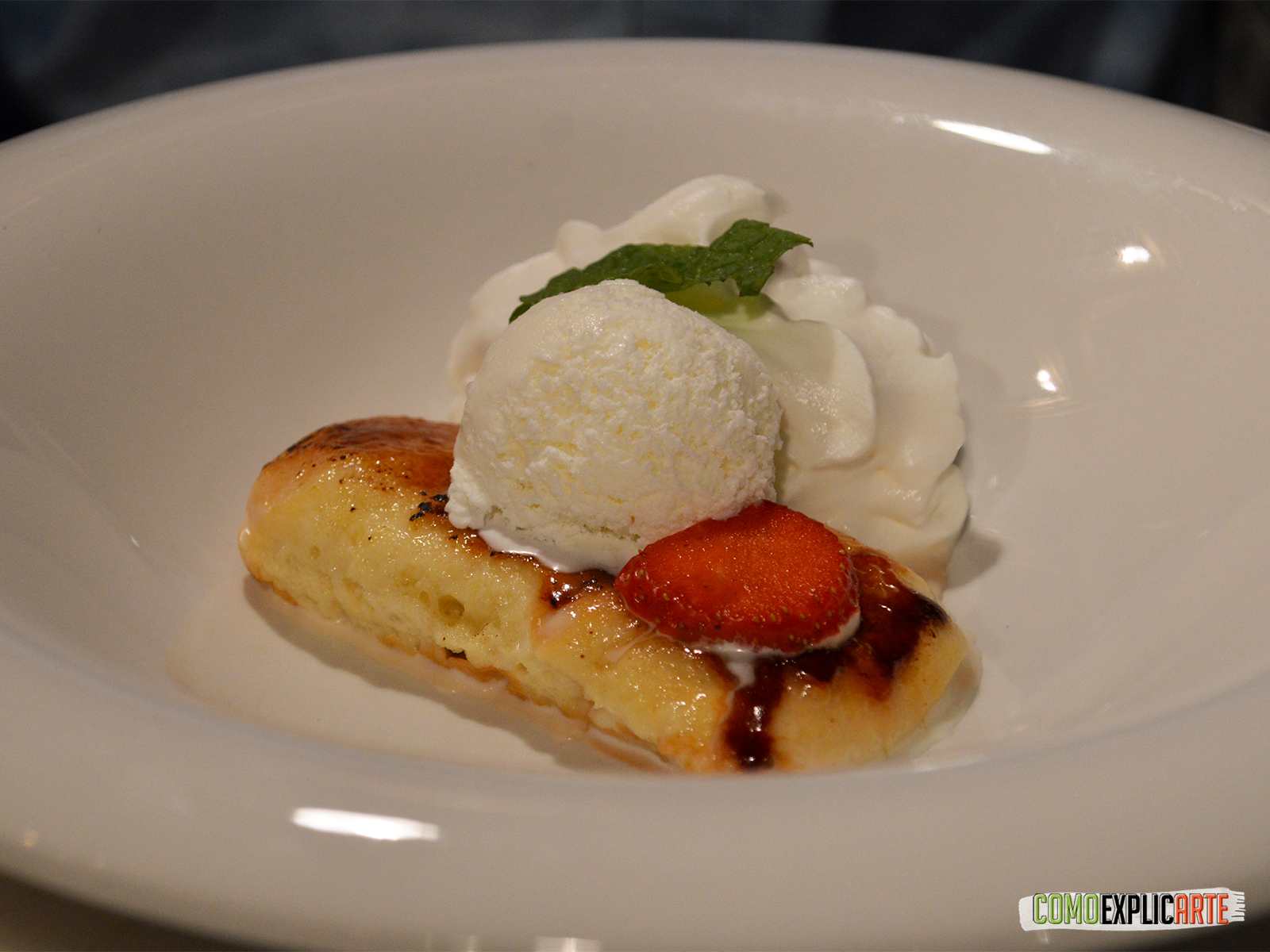 La calidad de los postres quizá es lo más cuestionable, quizá son demasiado “lácteos” para nuestro gusto, pero es opinión personal. Nos trajeron ‘My loving torrija’ con helado de yogur búlgaro y chantilly; y el cheesecake con helado casero de vainilla de Bourbon y coulis de frutos rojos.