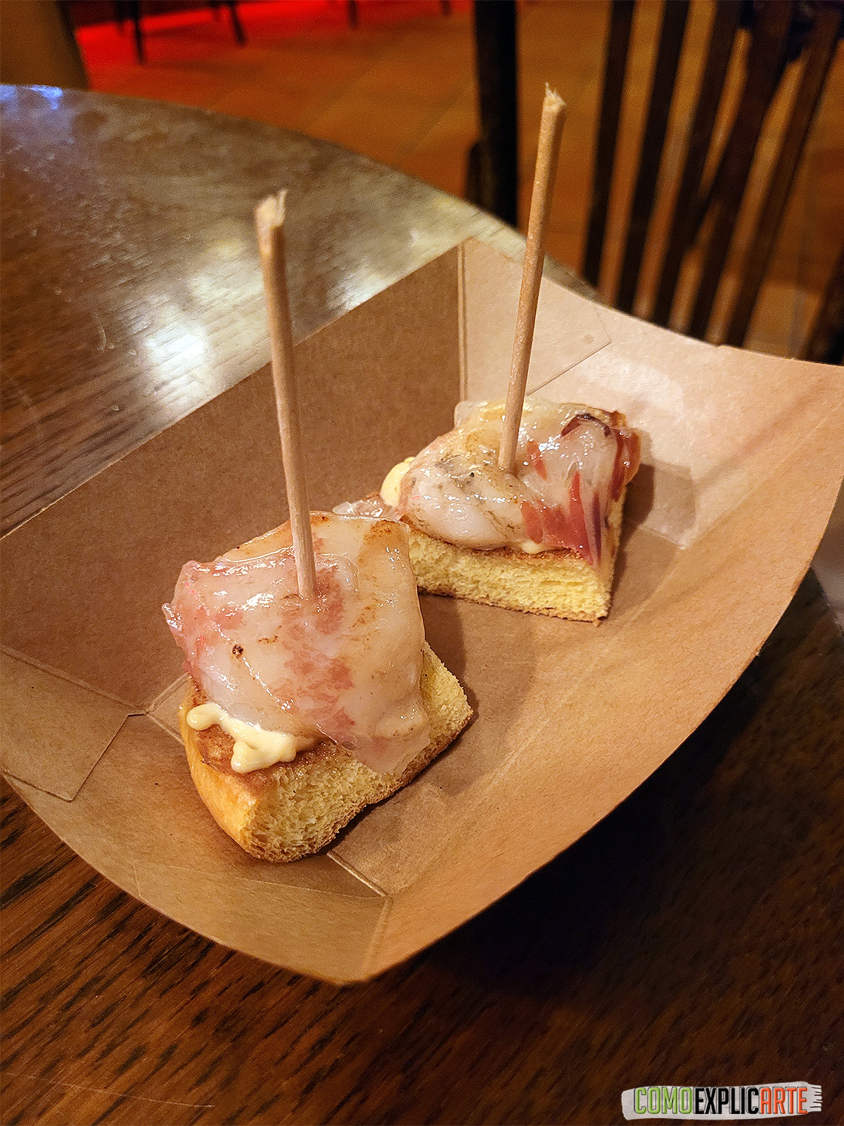 Nosotros fuimos a cenar hace poco y primero probamos un par de entrantes que ya nos dejaron boquiabiertos como la vieira y papada en brioche con mayonesa de miso, las brochetas de pollo yakitori al romero y el taco de atún flambeado con guacamole.