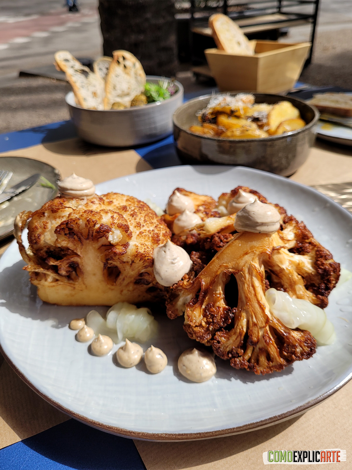 Entre sus entrantes destacan las patatas rostidas con trufa y parmesano, el bacalao mantecado con crema de puerros y yema marinada o el Vitello Tonnato. Si buscas algo más internacional u prefieres opciones veggie, quédate con el falafel estilo Radici o la coliflor con pepino encurtido y mayonesa de ajo negro.