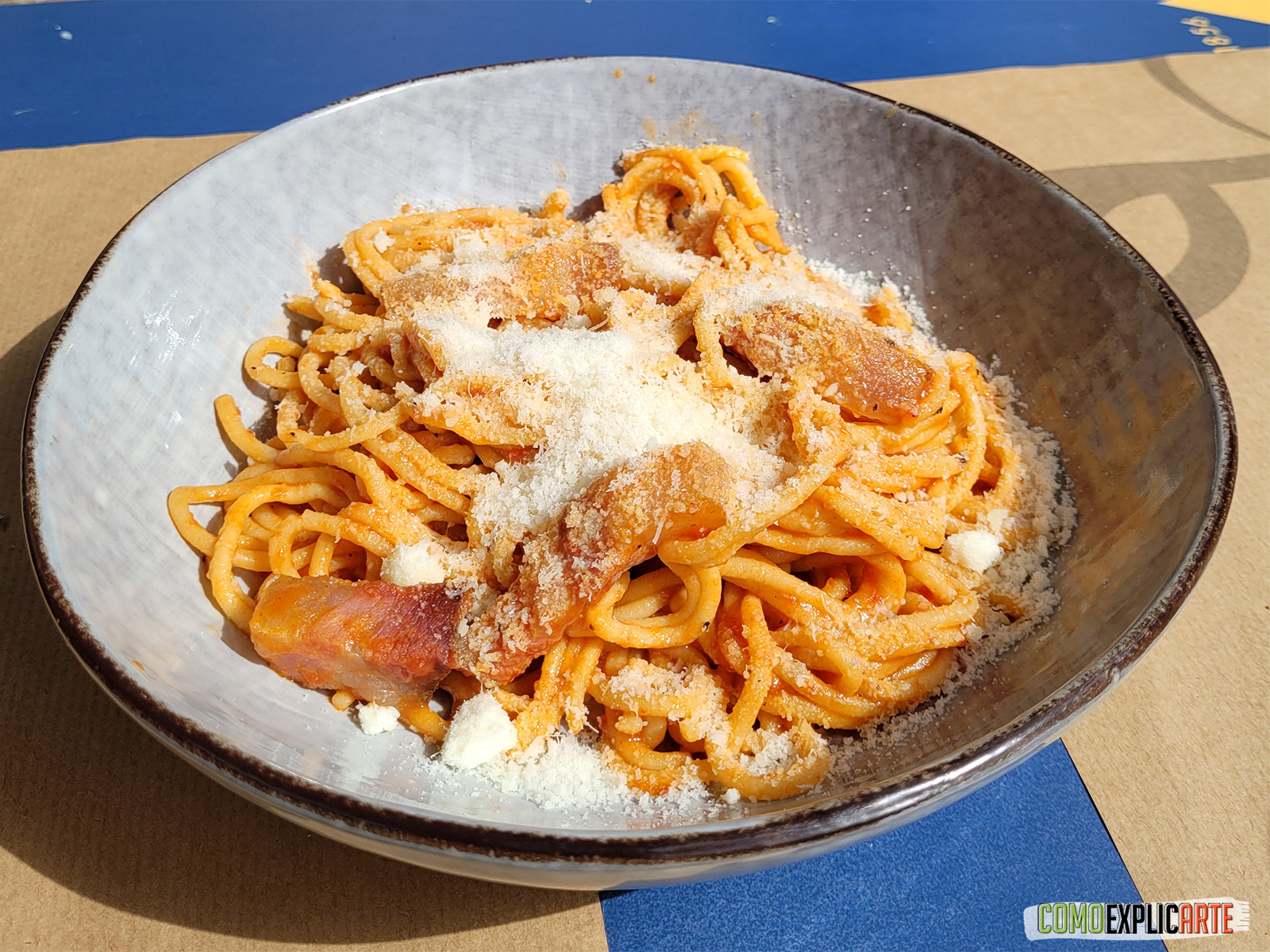 Los platos de pasta son generosos y muy sabrosos, servidos con spaguetti, farfalle, penne o linguini, en función de la salsa que elijas. Probamos la Amatriciana (guanciale, tomate y queso), la Norma (con berenjena asada, tomate y ricota) y la Carbonara (típica con huevo y sin nata) y a cada cuál mejor.