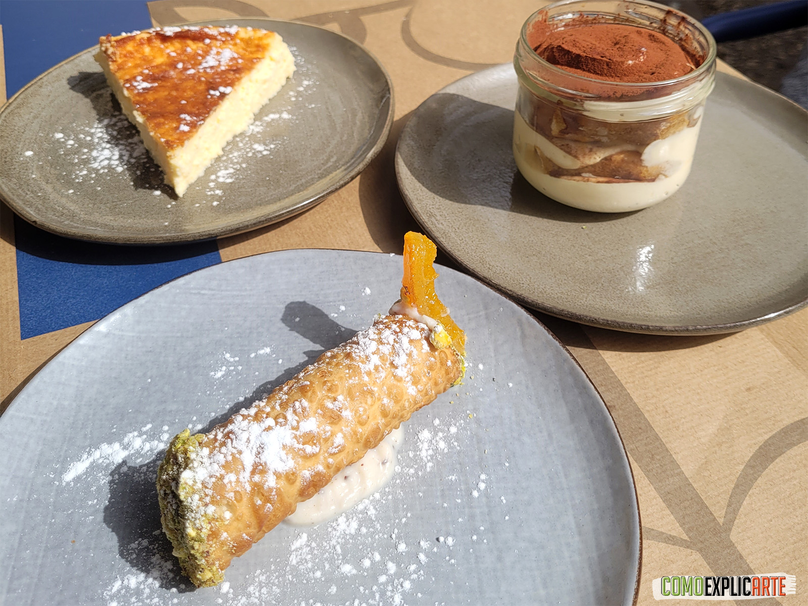 Terminamos compartiendo un tiramisú, un cannoli siciliano y una tarta de queso, y nos marchamos con una sonrisa y la barriga llena. Es un restaurante donde se está a gusto y puedes ir con familia, amigos o en pareja. Informal pero atractivo. Abren todos los días de la semana.