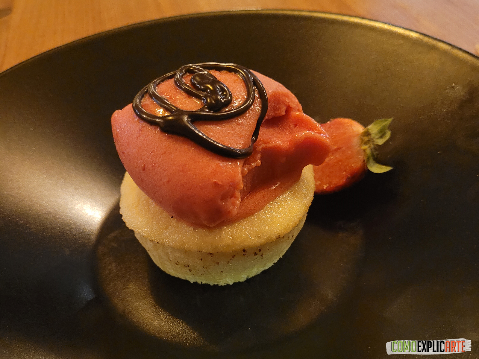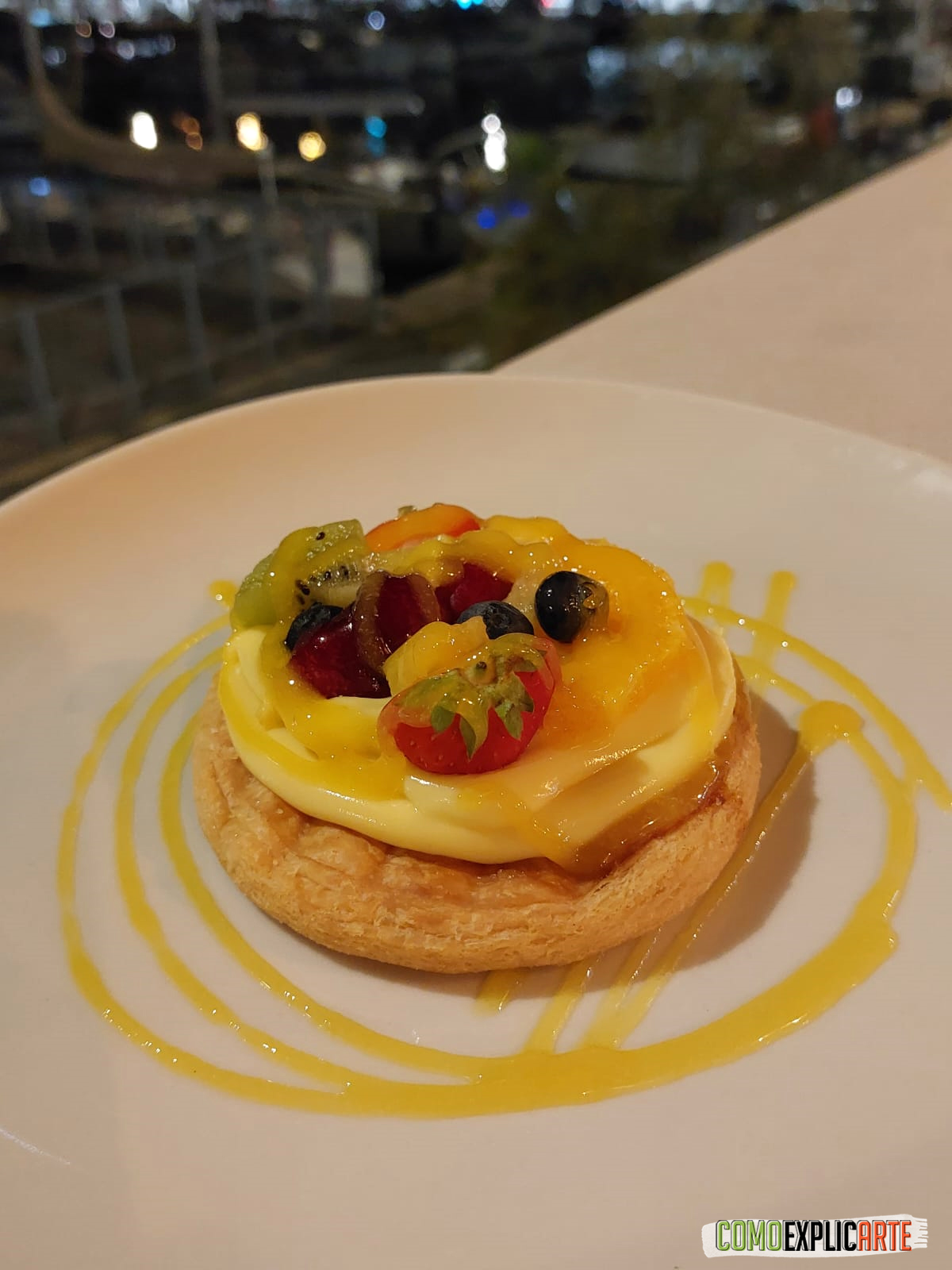Anocheció a la llegada del postre. Para terminar nos sirvieron un coulant de chocolate blanco con helado de frutos rojos y una tartaleta de crema con fruta fresca. Los dulces nos parecieron más flojos que el resto, pero esto ocurre muchas veces cuando la carta es amplia y no puedes llegar a todo. Siendo una cena evitamos pedir paella, pero cabe decir que nos quedamos con ganas de probar su menú de arroz por 28€.