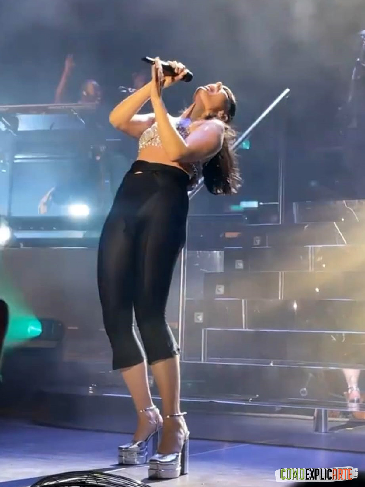 Comenzó con Do It Like a Dude y Masterpiece. Tras saludar a sus fans, intercaló varios temas movidos y sensuales como It’s My Party, Sexy Lady, Wild, Burnin’ up y Sex Machine. Con unas mallas con transparencias, un top elegante y unos tacones altos, se desenvolvió como pez en el agua por el espacio. En el repertorio tampoco faltaron Mamma Knows Best, Thunder y I Want Love, aunque la gente esperaba sus mayores éxitos.