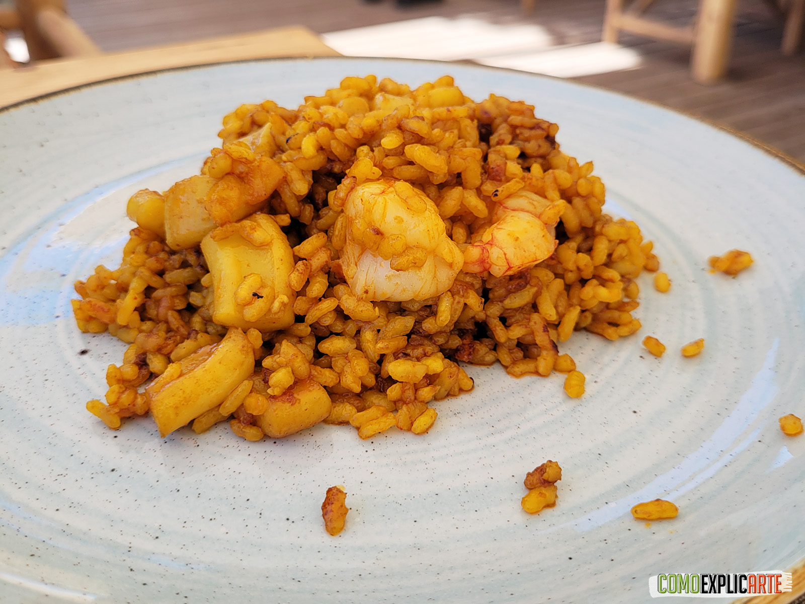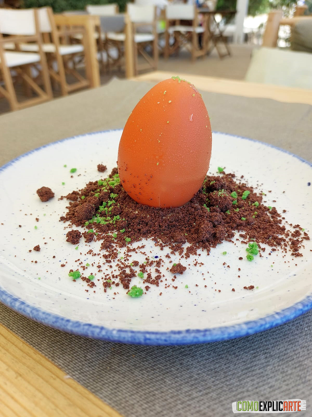 Nos gustó mucho como tienen estructurada la carta, con la historia del restaurante en la primera página y tres capítulos diferenciados: Comparte (entrantes), disfruta (principales) y goza (postres y bebidas). Todo lo que probamos nos fascinó, desde el pan con alioli y aceitunas con tres clases de pan distintas hasta su popular “huevo de color”, un trampantojo dulce formado por chocolate blanco con mango y tierra de cacao. Lo que más disfrutamos fue sin duda el arroz del senyoret, aunque el calamar con sobrasada, berenjena, patatas y huevo frito nos sorprendió por la mezcla de sabores. La atención fue también excelente. Volveremos tarde o temprano porque se queda entre nuestros favoritos.