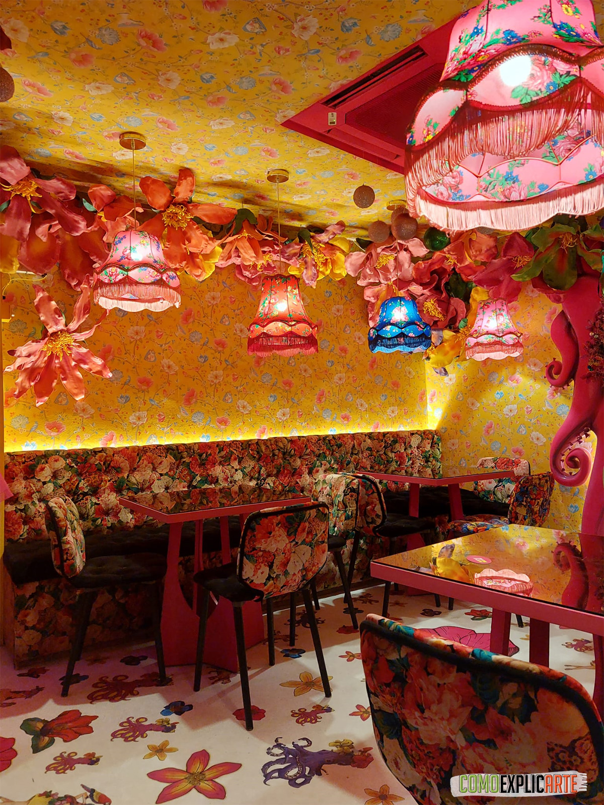 En la Calle de Cádiz, a pocos metros de La Puerta del Sol en Madrid, nos encontramos con un local colorido que se ve desde lejos por sus letreros de neón y las flores que decoran la entrada. Es Rosi La Loca, un restaurante lleno de vida cuyo slogan invita a pasar: “En un mundo de locos tener sentido no tiene sentido”.