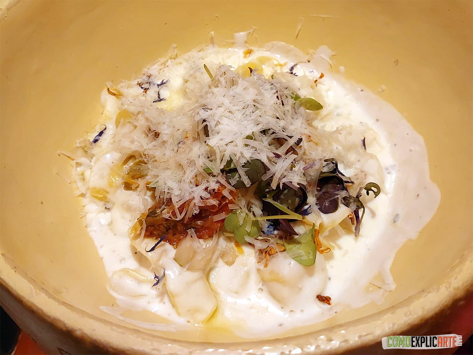 Nosotros fuimos a comer durante nuestra escapada a la capital. Pedimos para compartir una Burrata ahumada con salmorejo de pimientos del piquillo y tomate semiseco, tartar de tomate amarillo, aceite de cebollino y micromezclum para chuparse los dedos; unos Saquitos caseros de pasta fresca rellenos de tres quesos, pera y crema de salvia bien generosos de queso rallado por encima; y un sorprendente Tataki de atún de aleta amarilla sobre cama de alga wakame con salsa teriyaki y alioli de cítricos, elaborado con buen producto y con un emplatado llamativo.