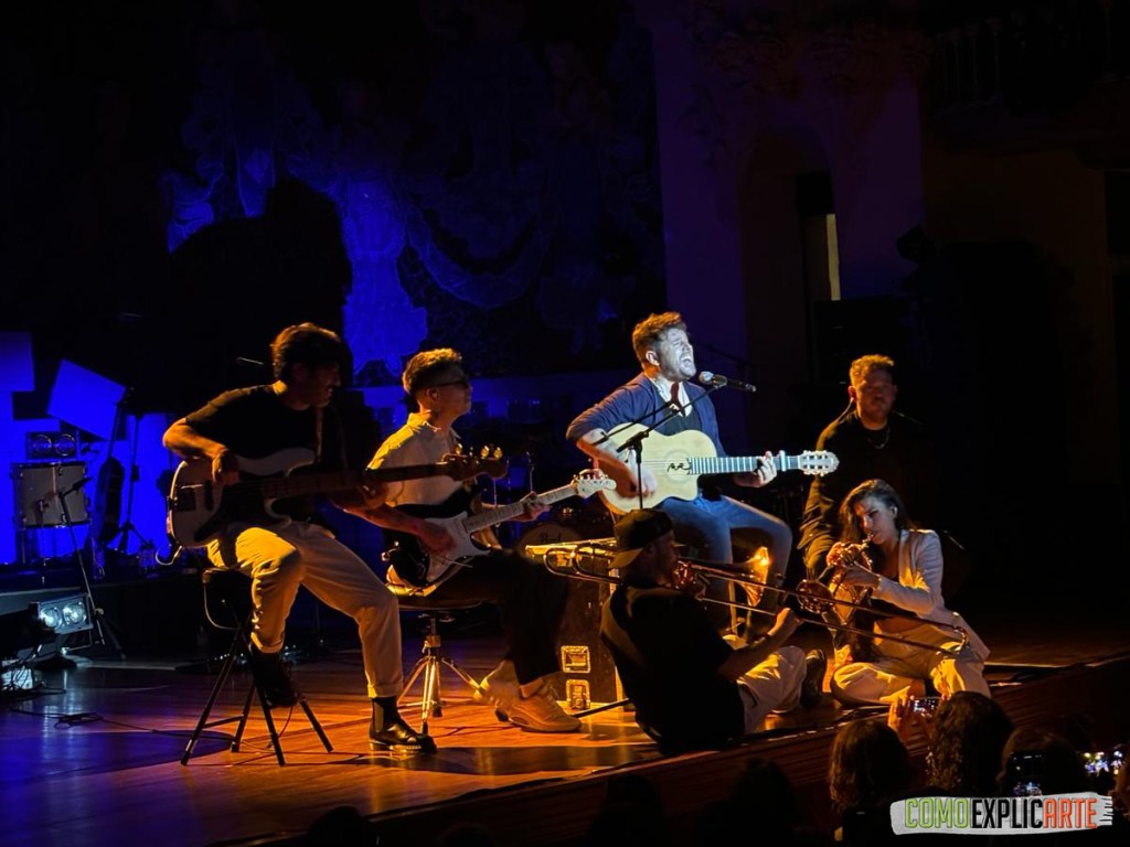 En acústico, al pie del escenario, con la guitarra y rodeado de sus músicos, sonaron Mama no y Te espero aquí. “Para mí todos los días están colgando de un abrazo. Me gusta la cercanía y lo bonito que se puede robar. Es un orgullo tenerlos a mi lado”, decía para presentar a Santi González (guitarra), Micky Martinez (batería), Matías Esien (Bajo), Jéssica Estévez y Santi Novoa (trompeta, coros y percusión).