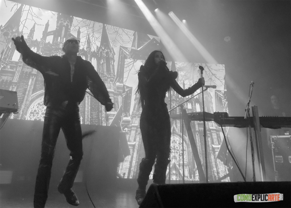 La noche comenzó con Challenger, dúo electrónico que supo marcar el tono de la velada con una propuesta intensa, cargada de sintetizadores y oscuridad controlada. Tras ellos, PRAYERS, el grupo mexicano de Leafar Seyer —pareja de Kat Von D—, ofreció su particular combinación de electro, spoken word y estética “cholo goth”, generando un clima de tensión magnética que funcionó como antesala perfecta al acto principal.